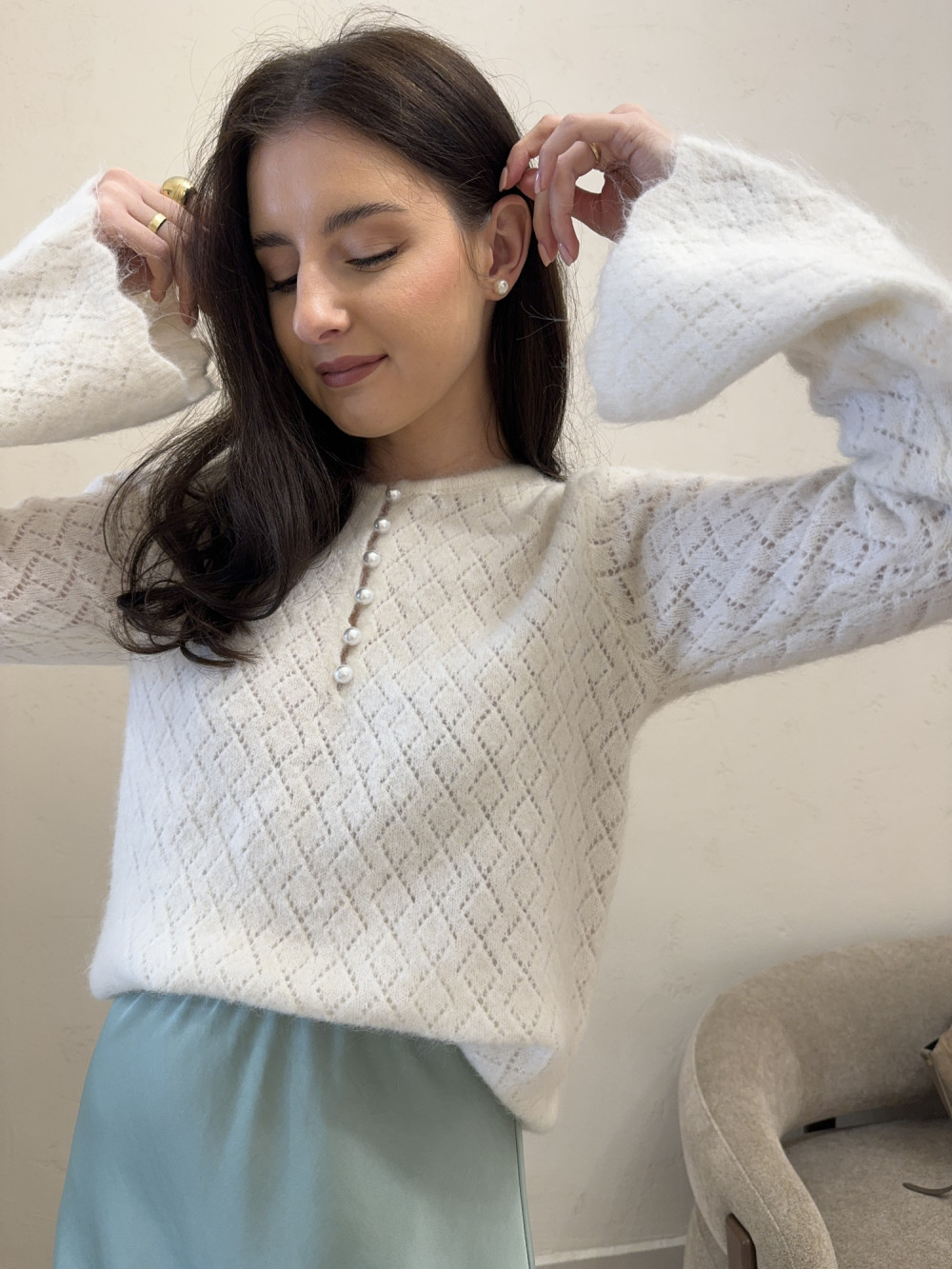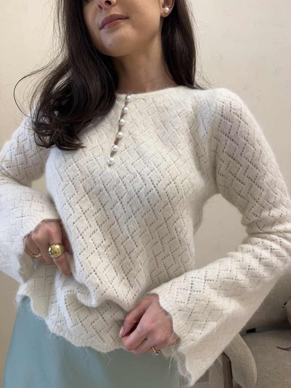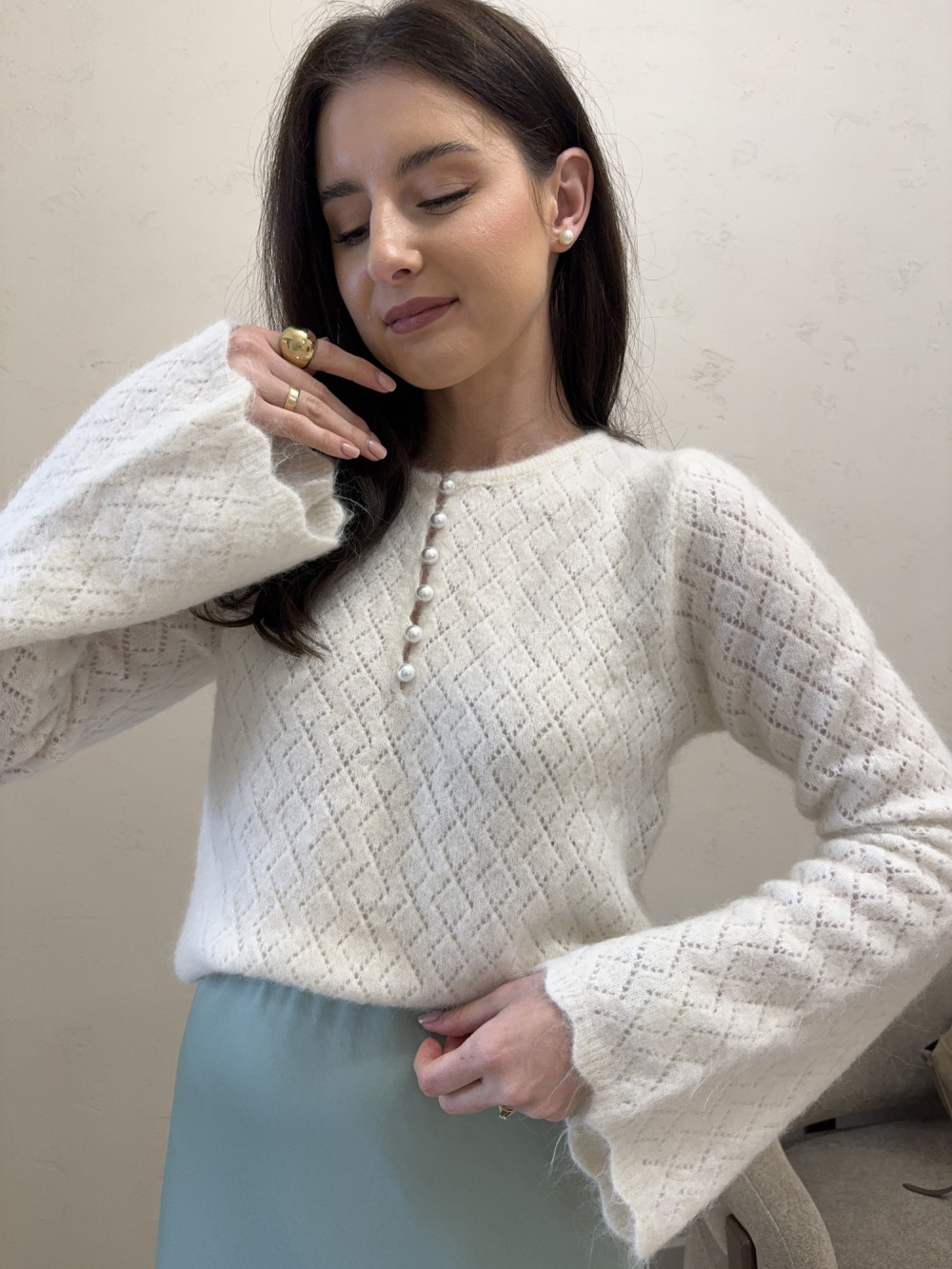 Sweter ażurowy z szerokimi rękawami PEARL