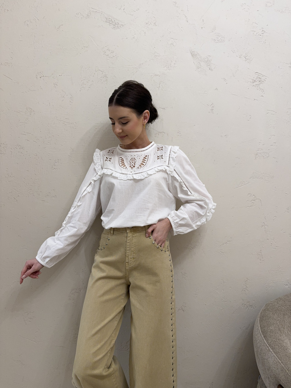 Bluzka z stylu boho z ozdobnym dekoltem 100% bawełna WILLOV