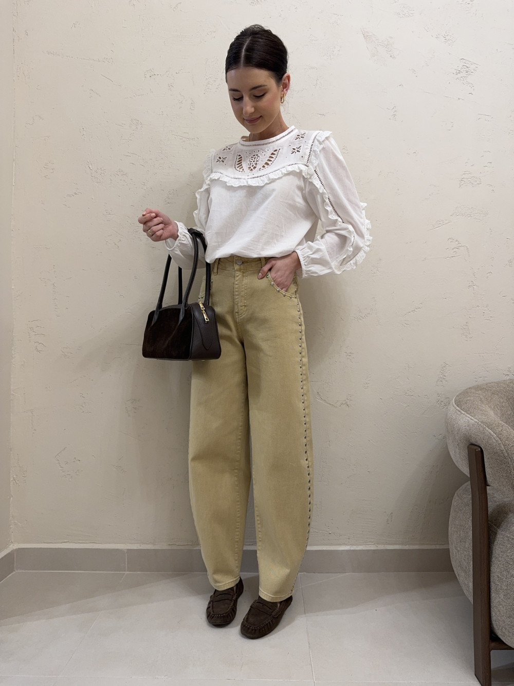 Boho bluzka uszyta w 100% z naturalnej bawełny, przewiewnej i delikatnej dla skóry. Bogate hafty, koronki i ozdobne wstawki tworzą niezwykle dopracowaną formę. Każdy detal podkreśla jej romantyczny, dziewczęcy charakter. To propozycja dla kobiet, które kochają subtelne, ręcznie wyglądające wykończenia.