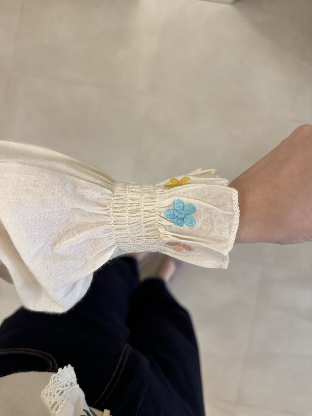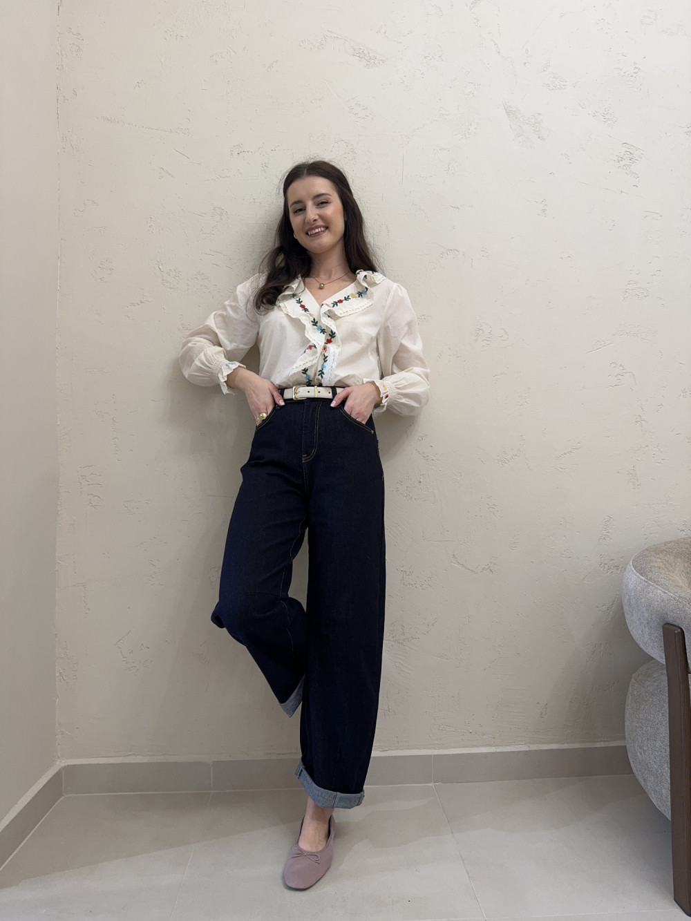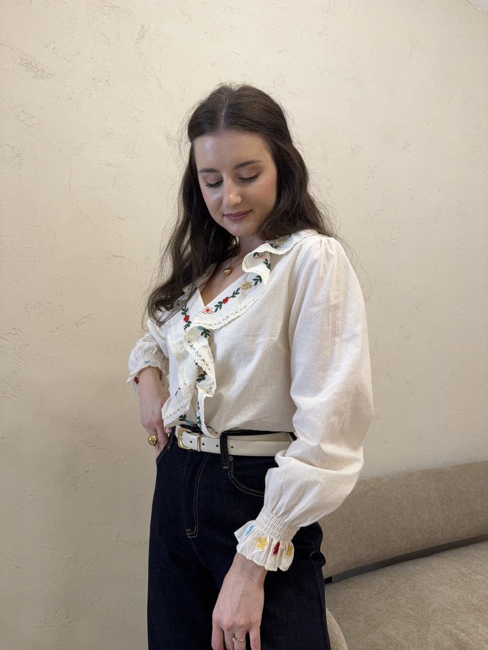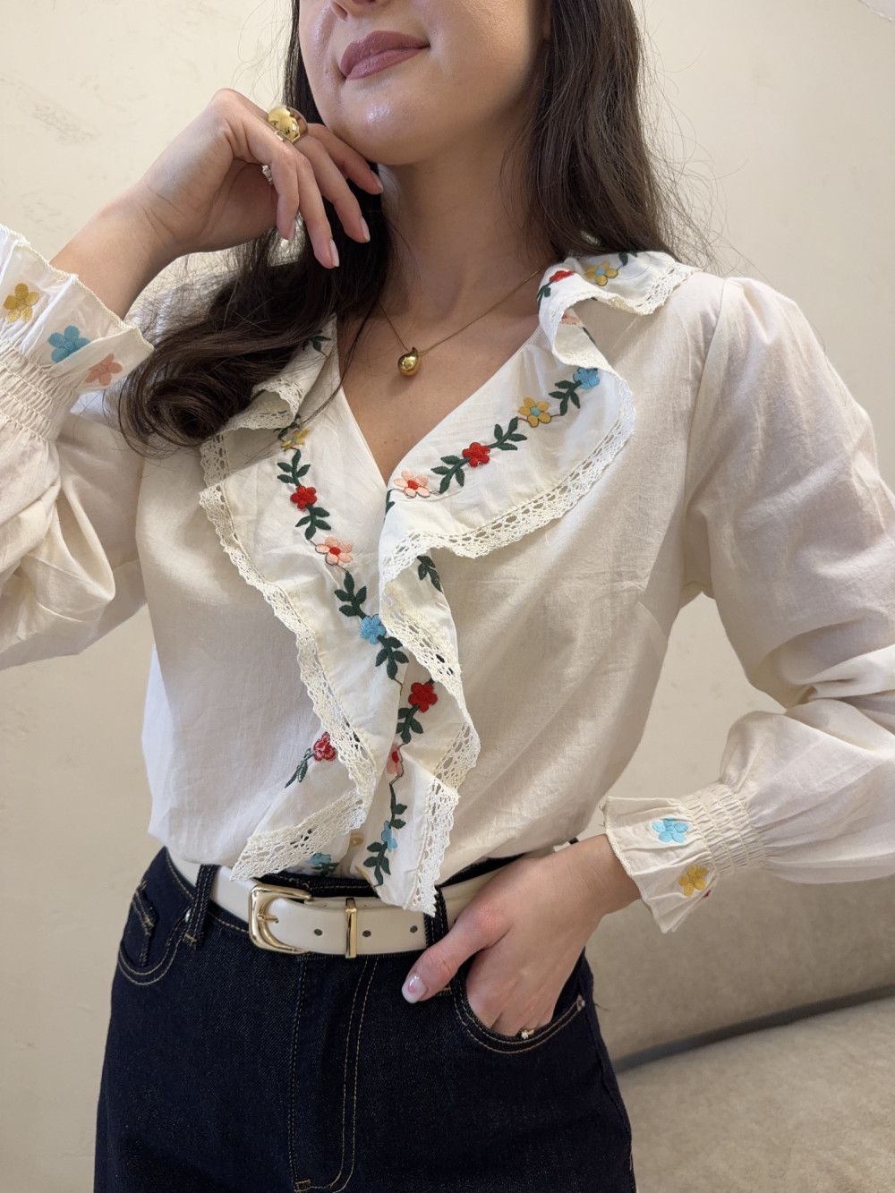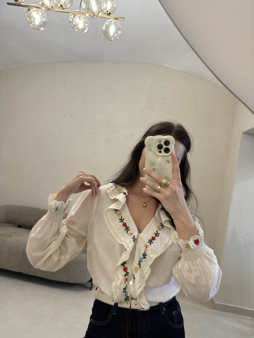 Koszula z żabotem w haftowane kwiaty 100% bawełna EVELYNN