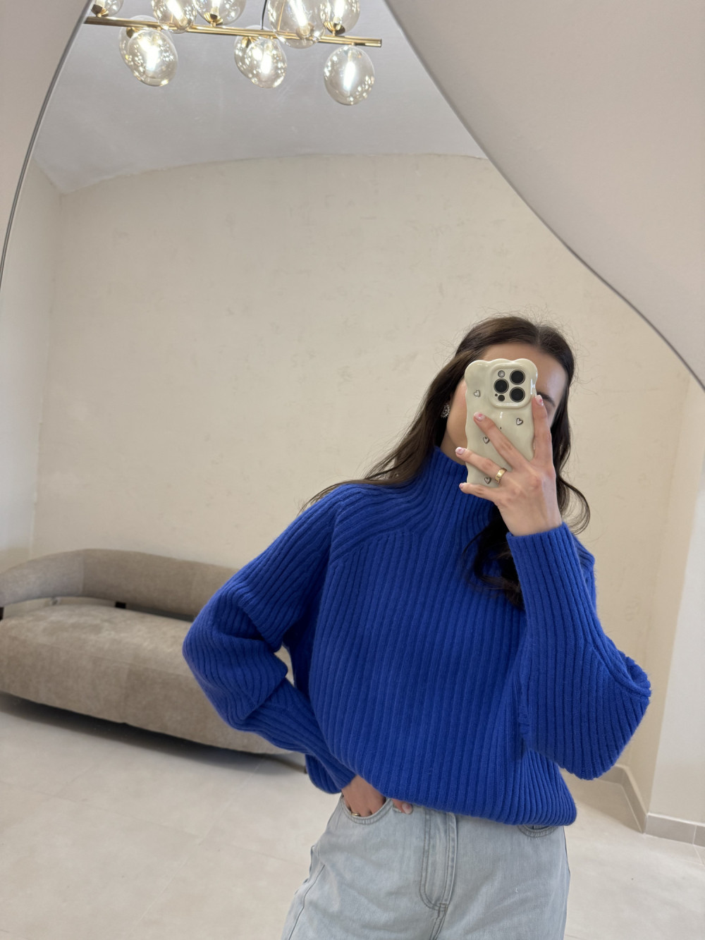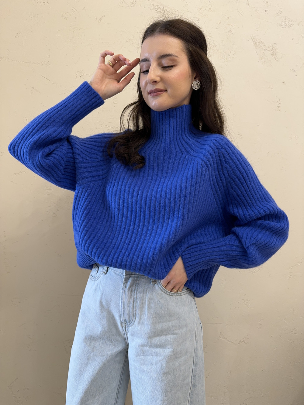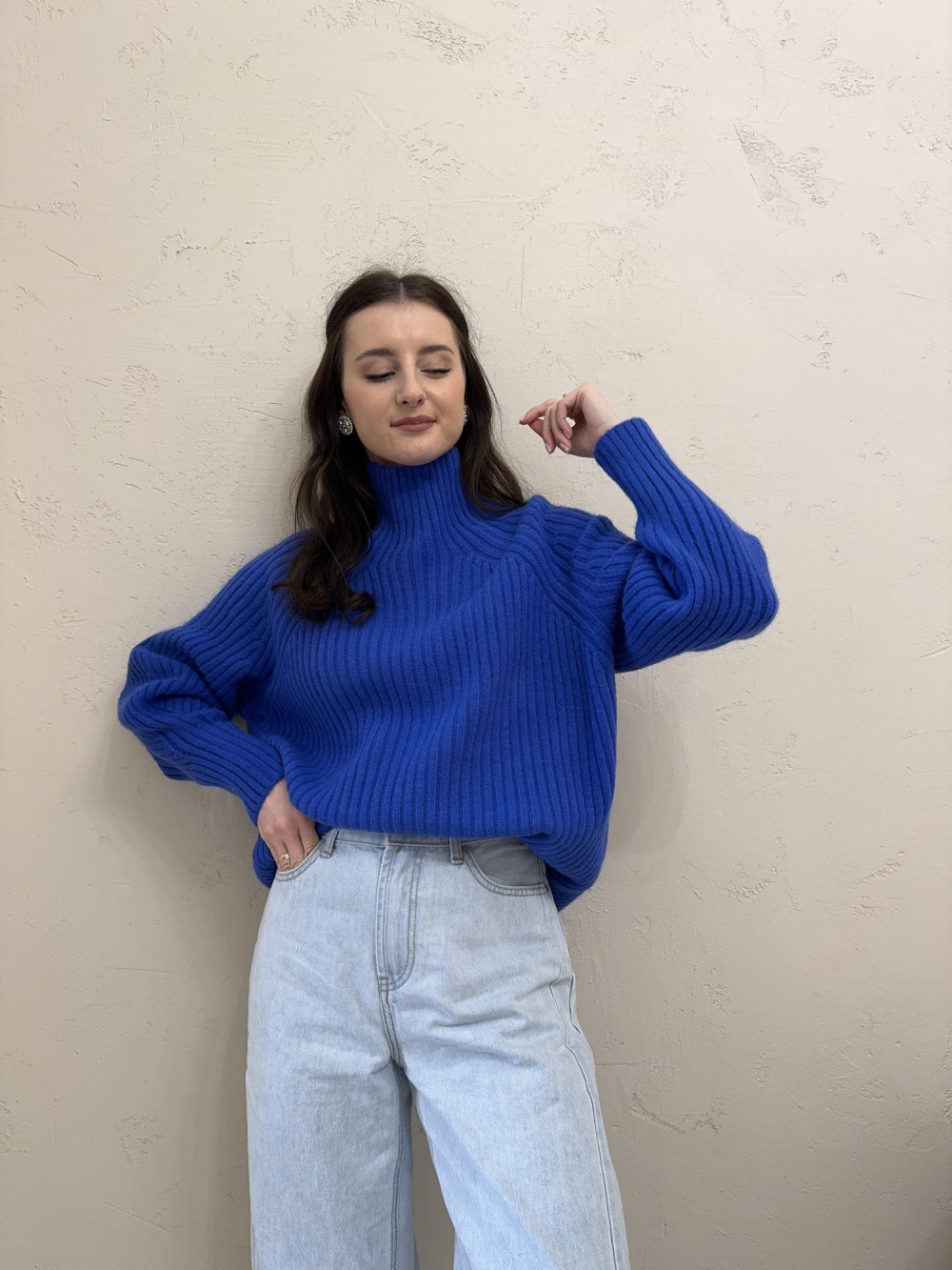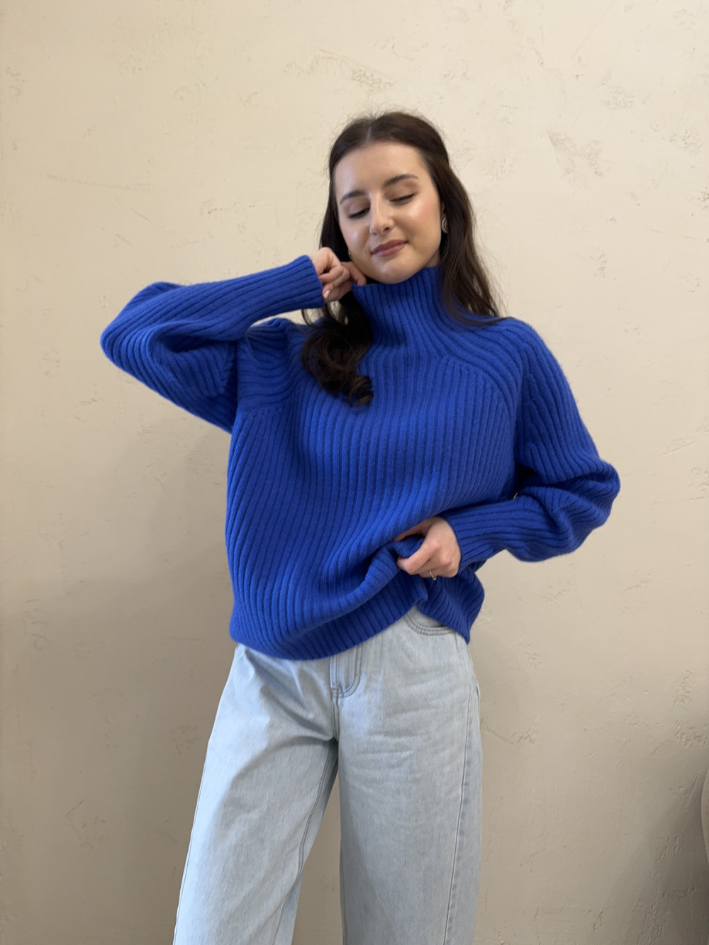 Sweter o kroju oversize gruby prążek chabrowy RIBBON