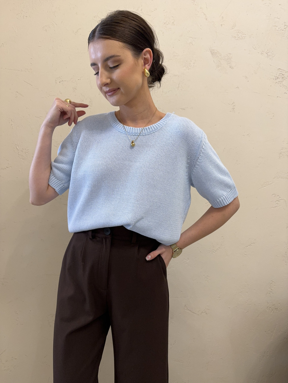 Sweter krótki rękaw 80% bawełna błękitny ISOLDE