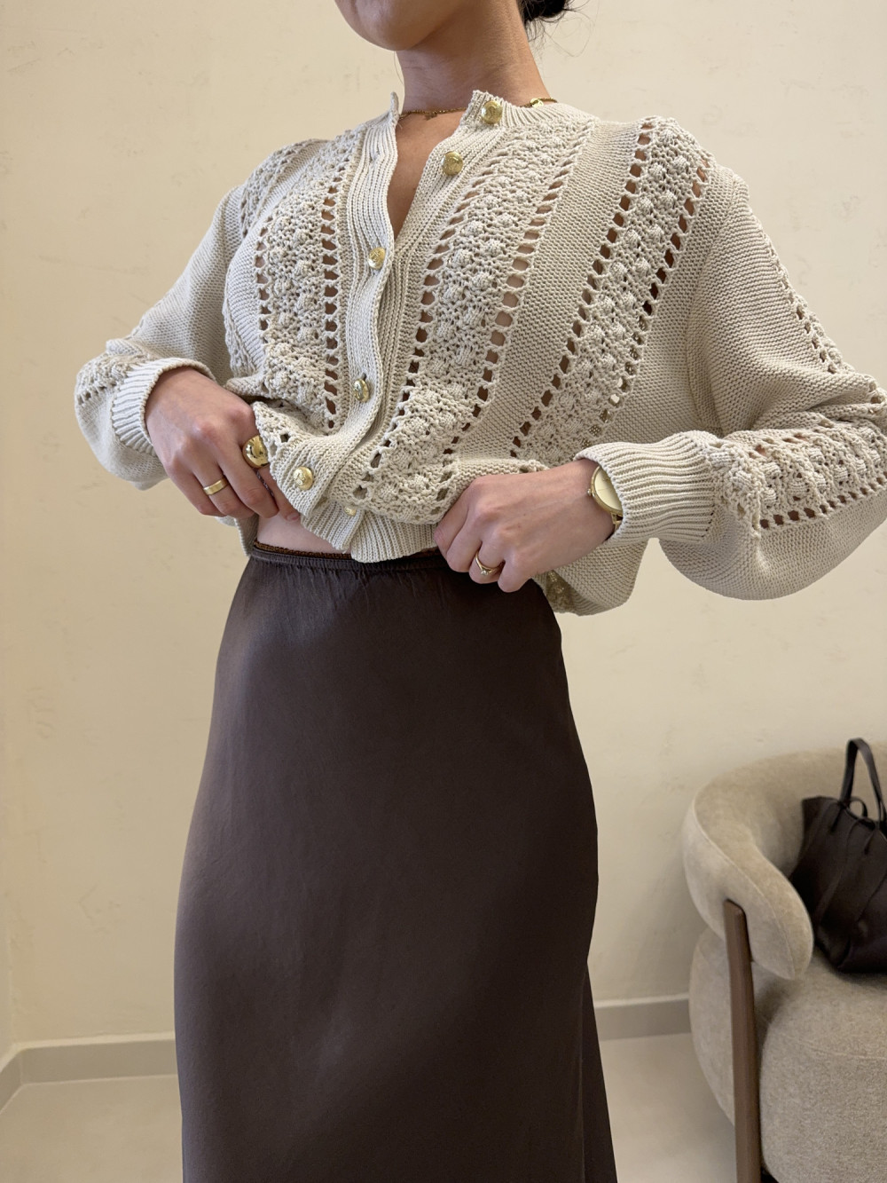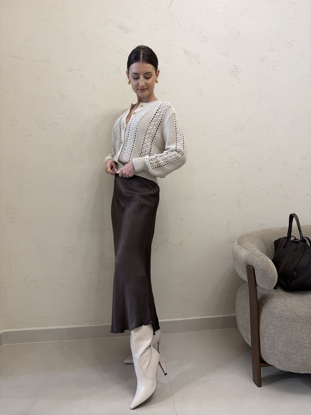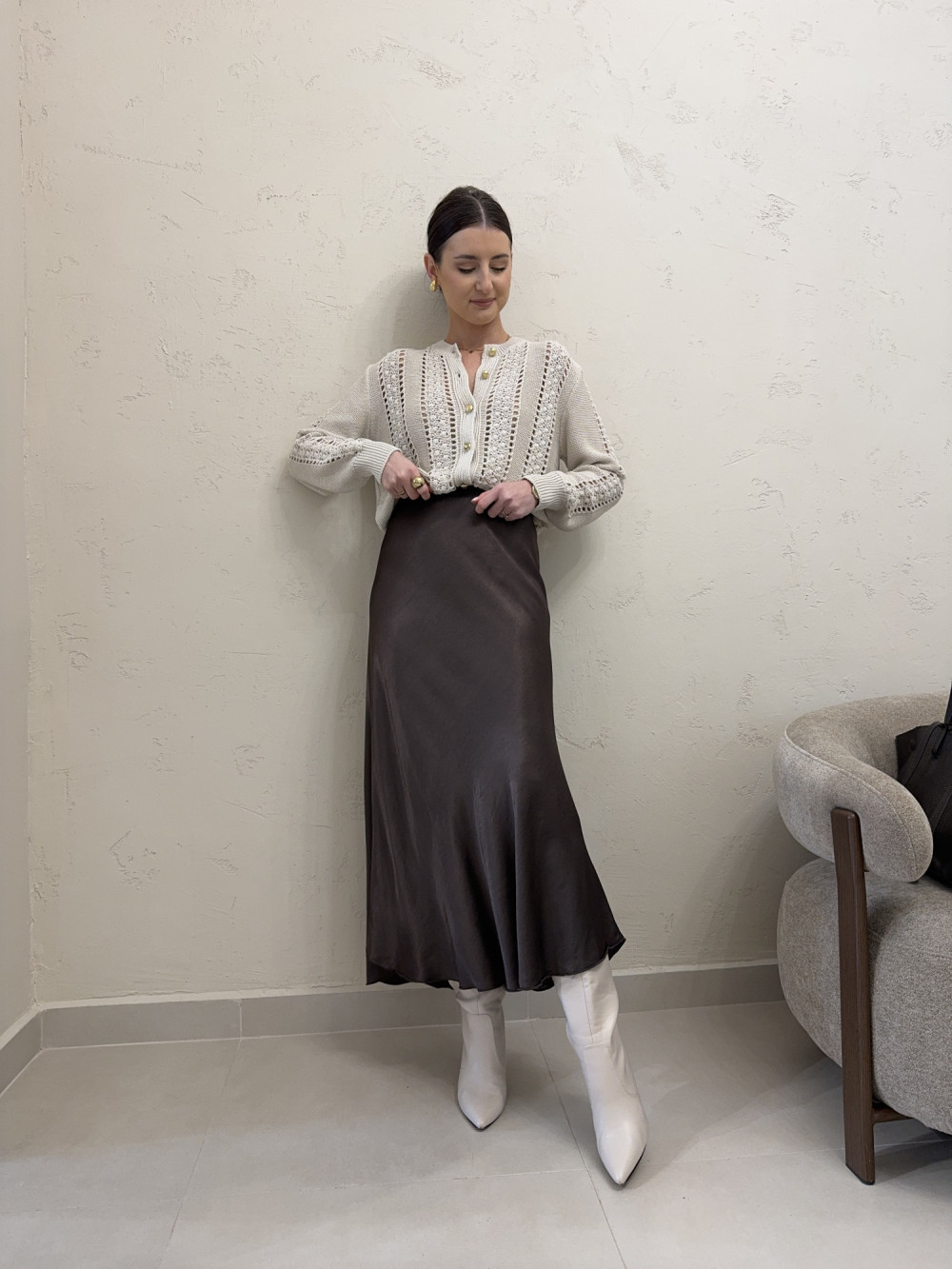 Filmik z produktem i dokładną prezentacją na osobie jest dostępny na naszym Instagramie - szykovnybutik, w wyróżnionej relacji "18.02.2026"