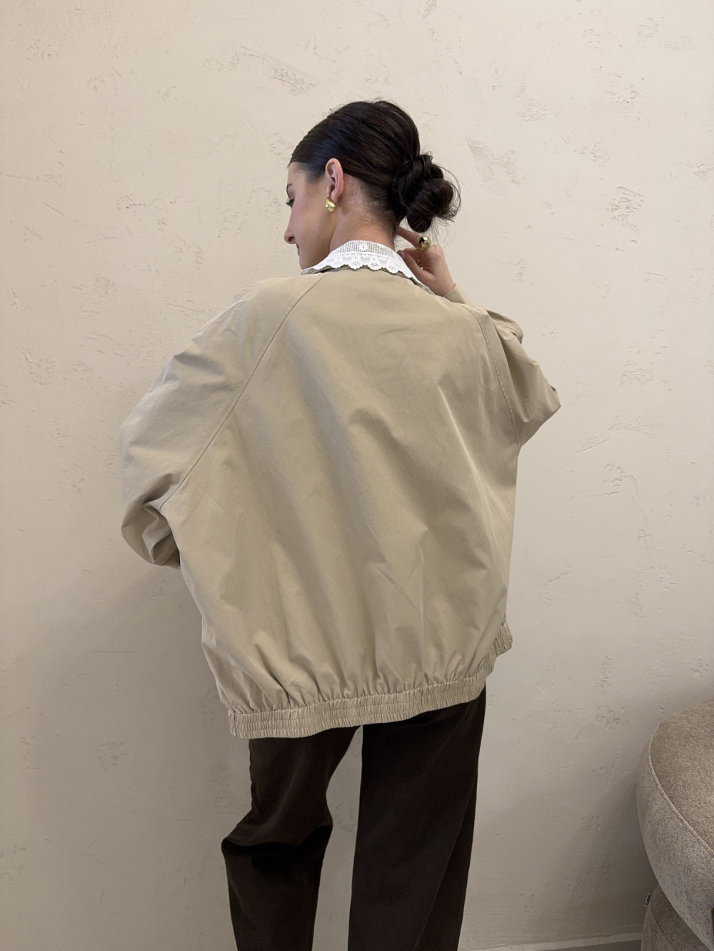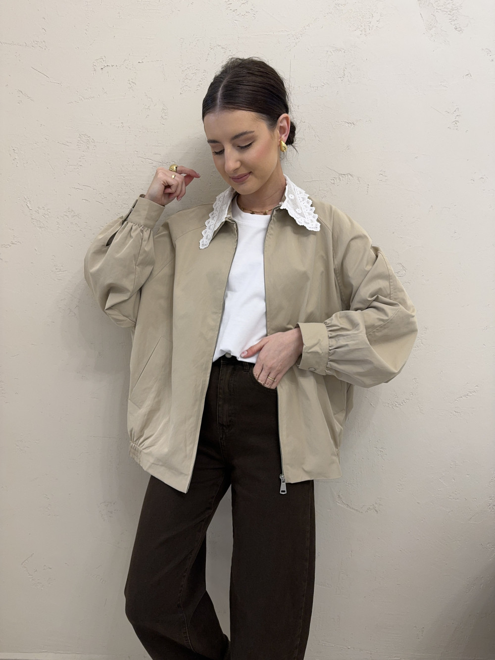 Kurtka oversize z odpinanym kołnierzykiem beżowa MARIBEL