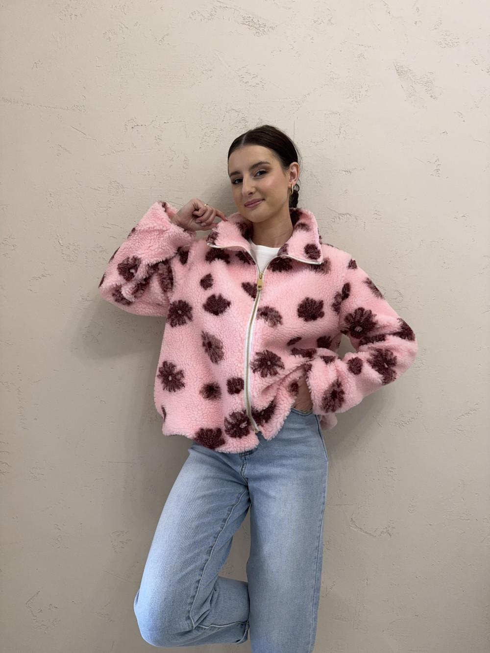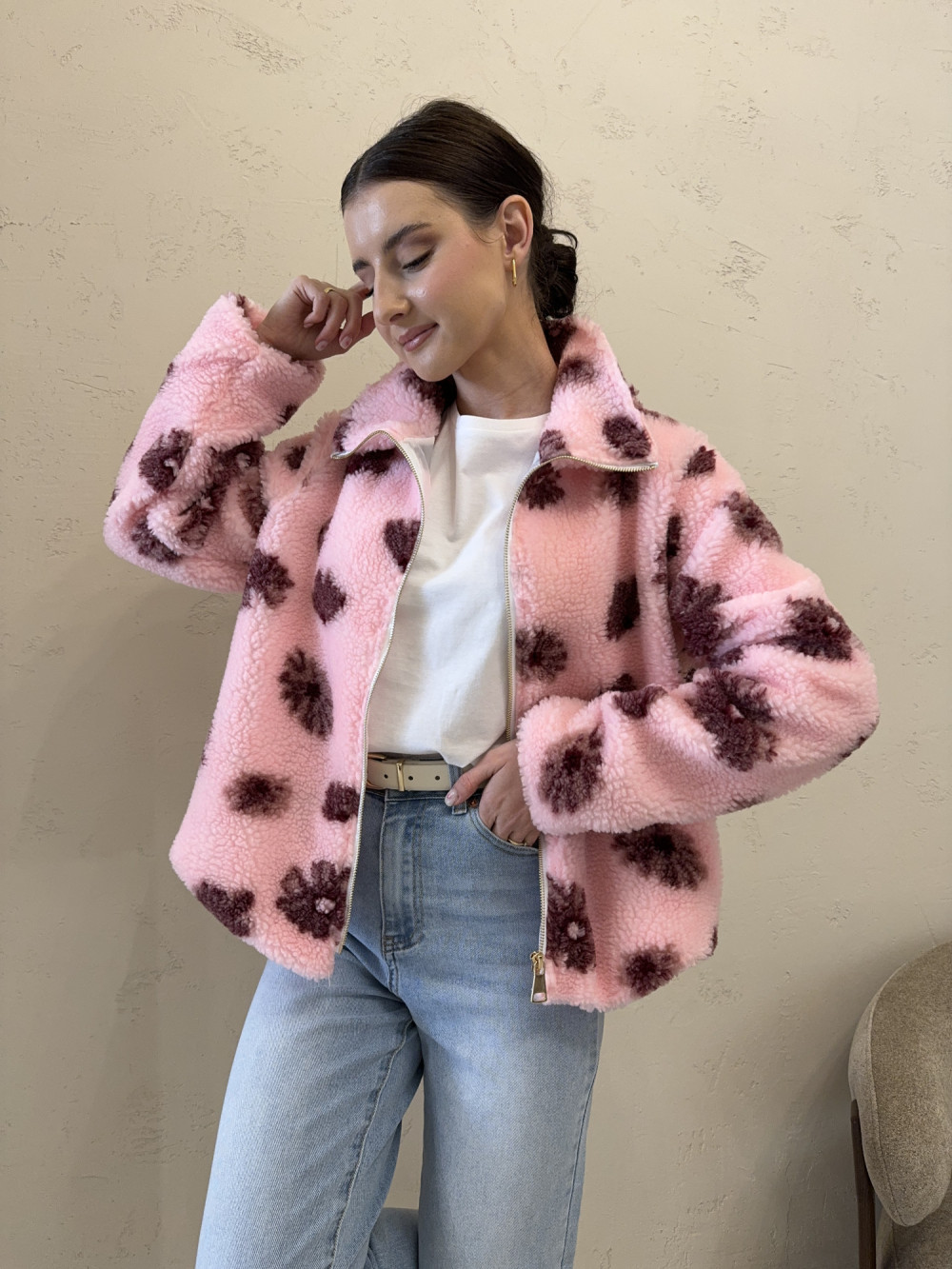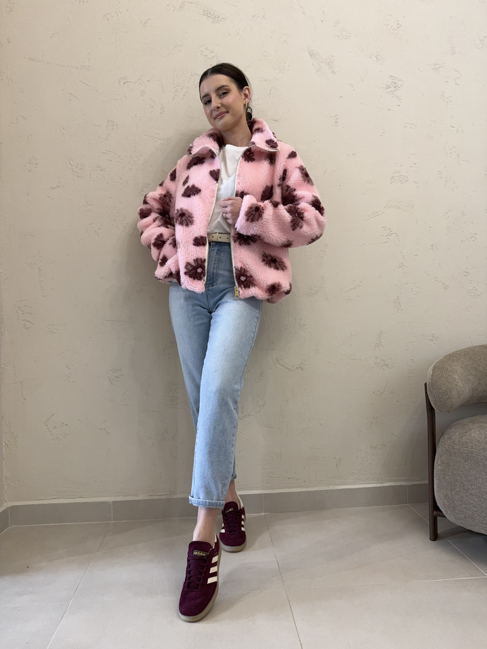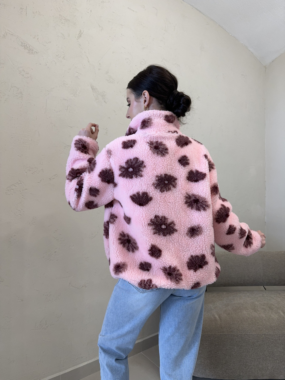 Polar/kurtka typu baranek w kwiaty różowa FLUFFY