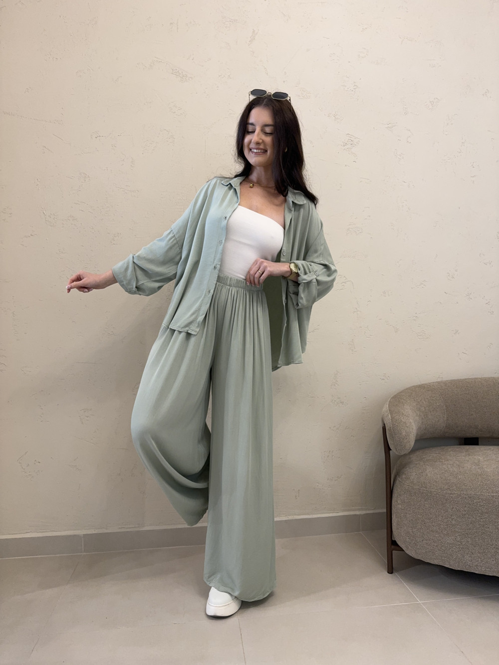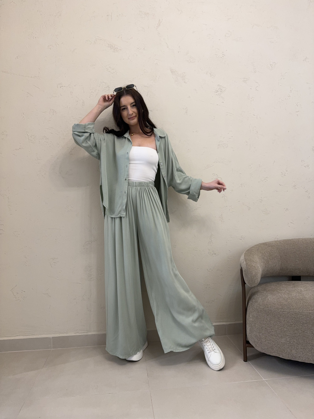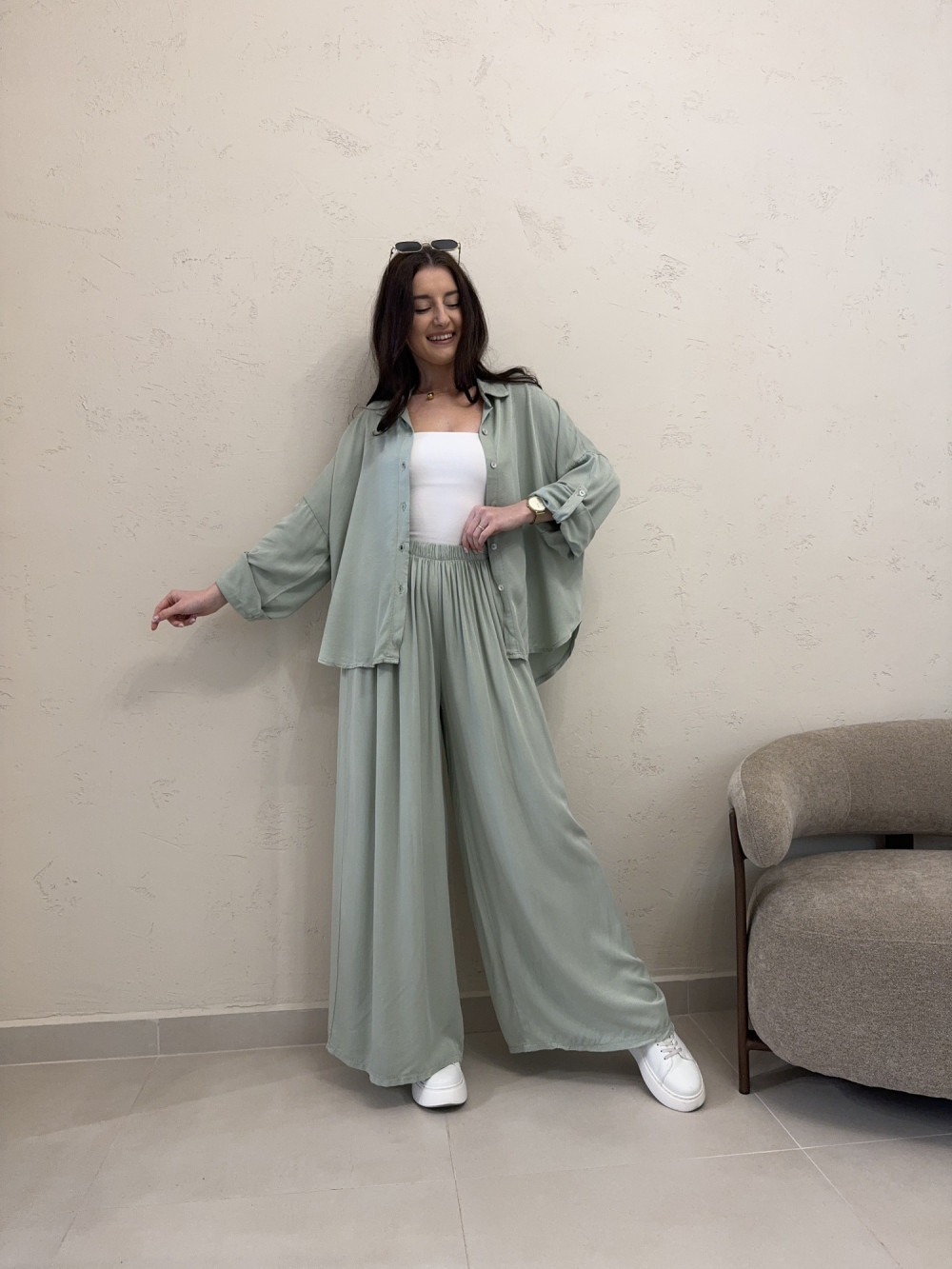Komplet szerokie spodnie + koszula oversize matcha VIRAL