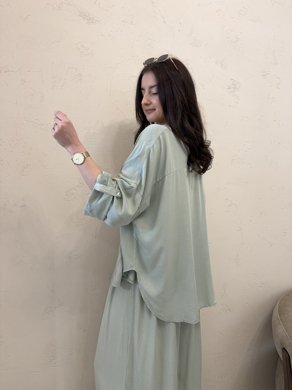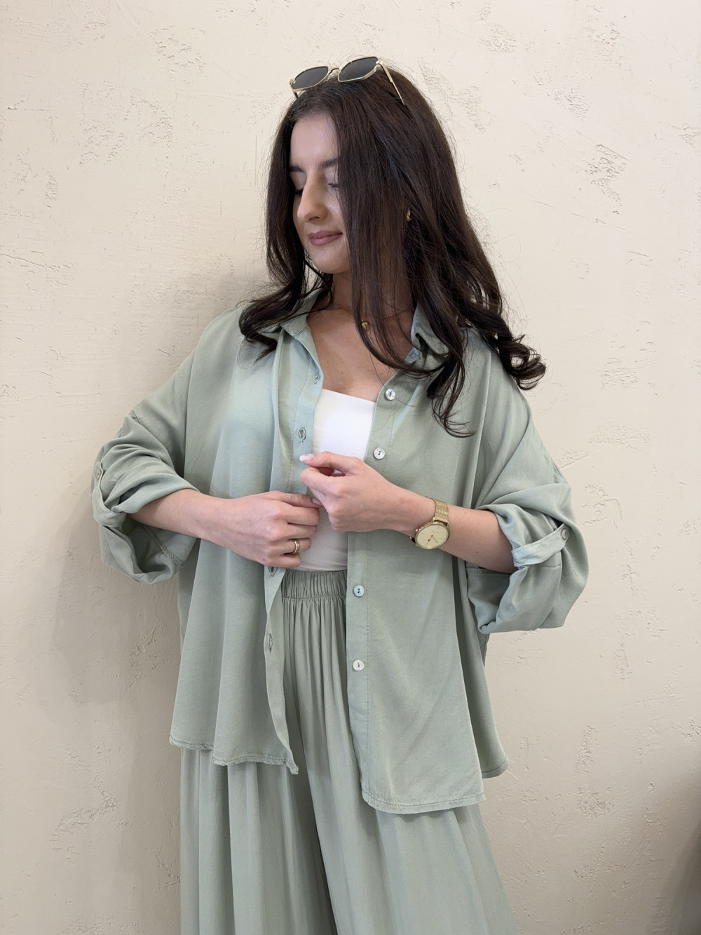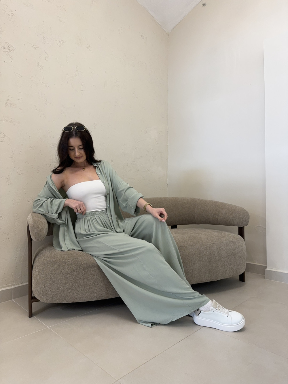 Komplet szerokie spodnie + koszula oversize matcha VIRAL