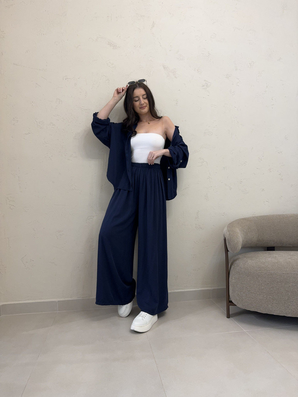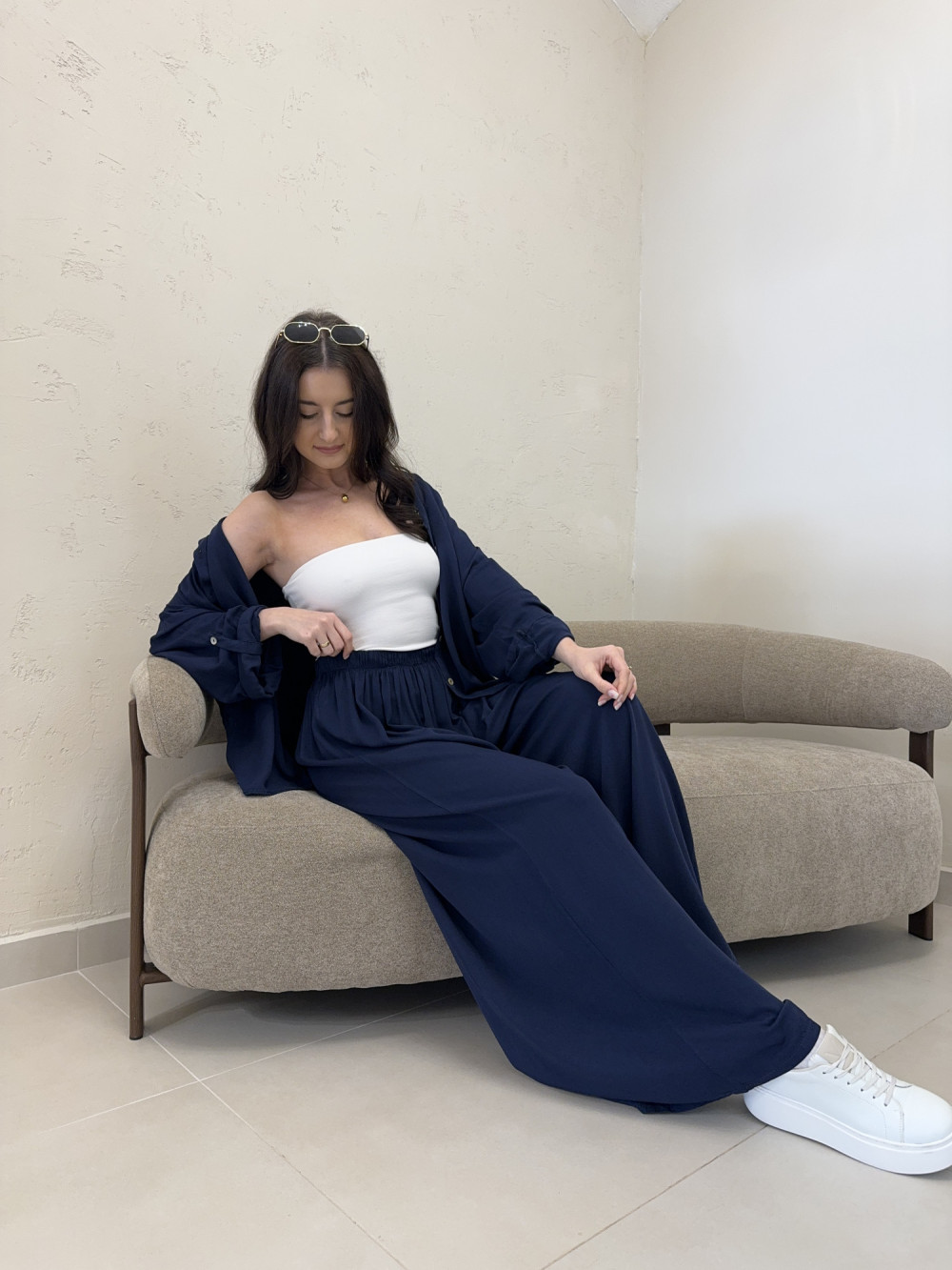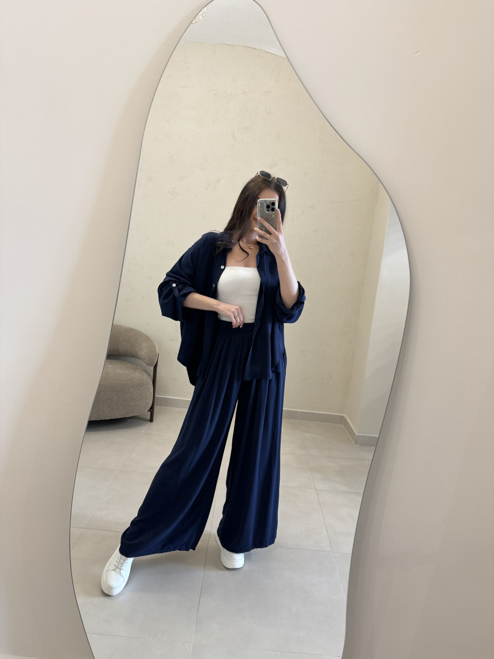 Komplet szerokie spodnie + koszula oversize granat VIRAL