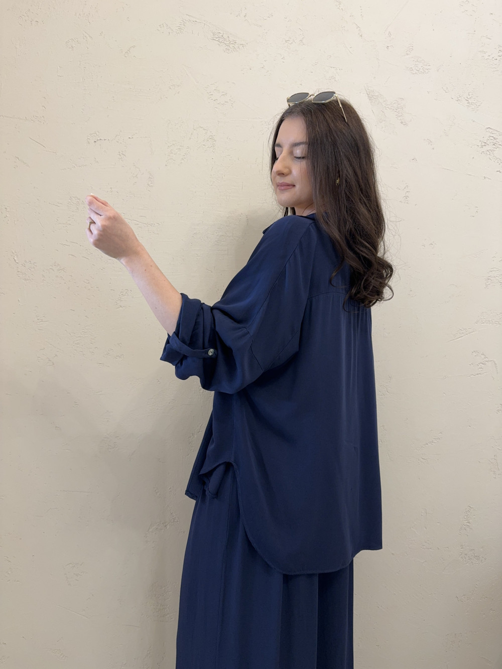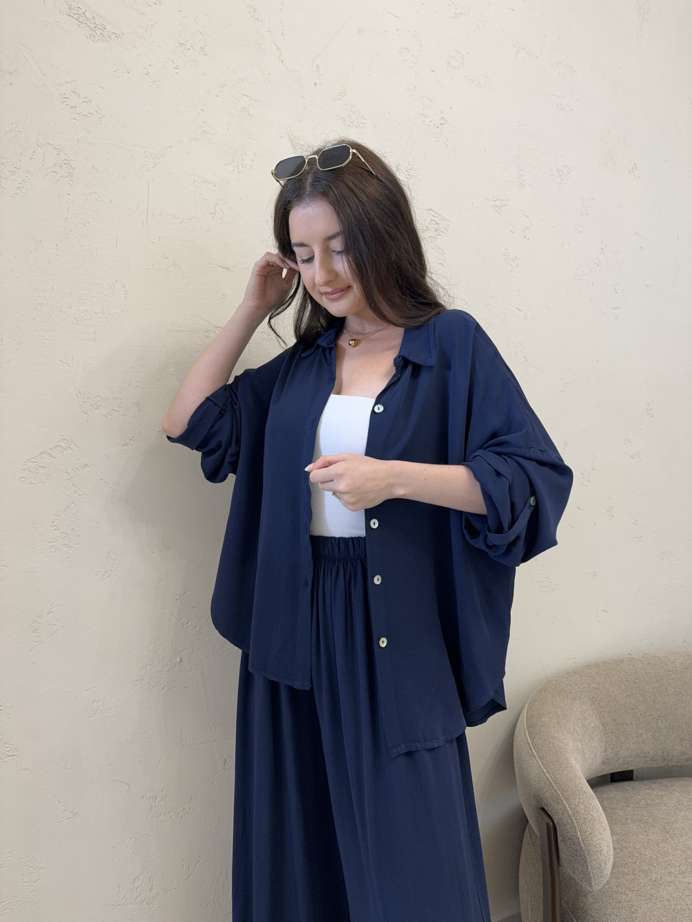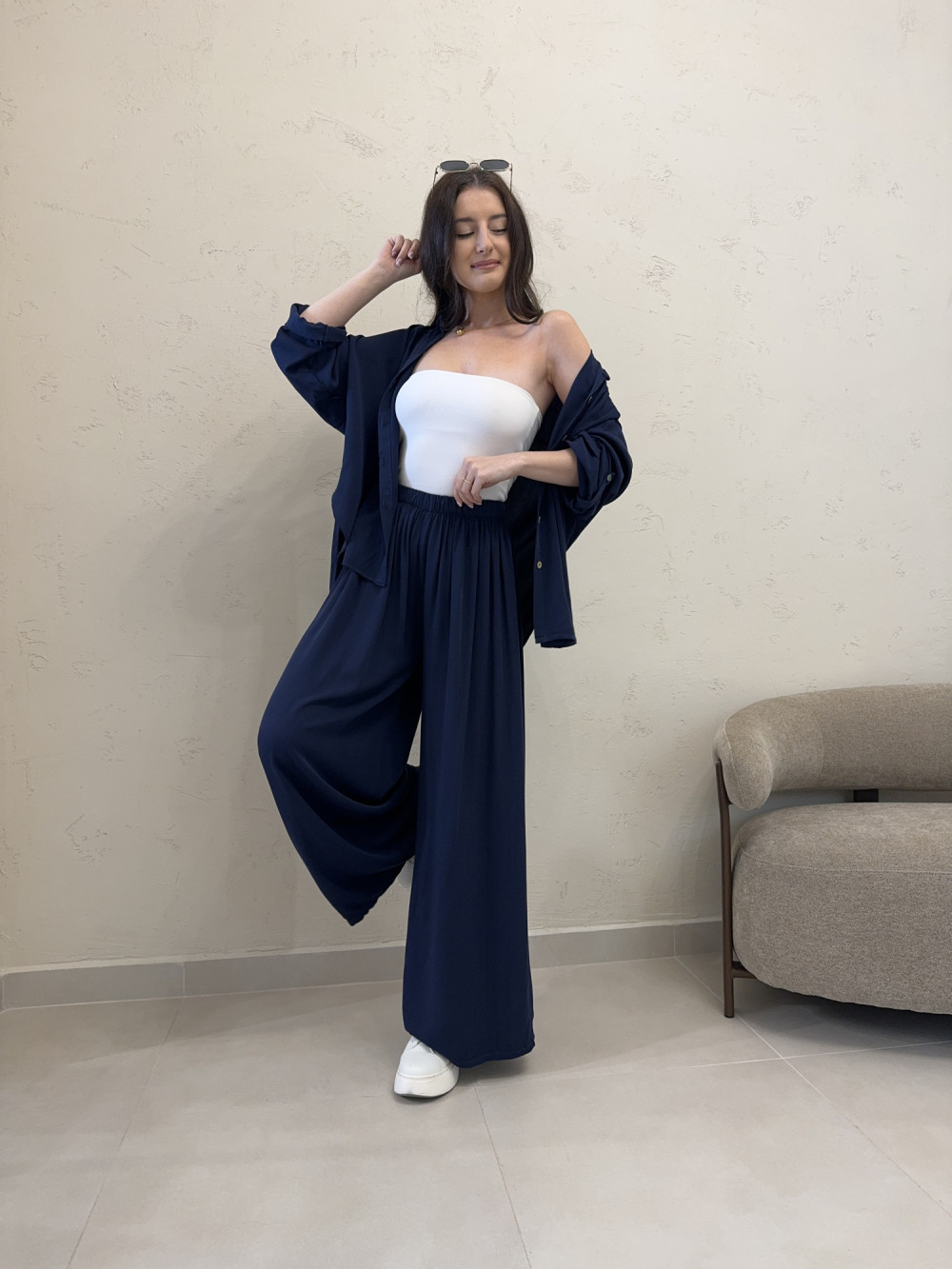 Komplet szerokie spodnie + koszula oversize granat VIRAL