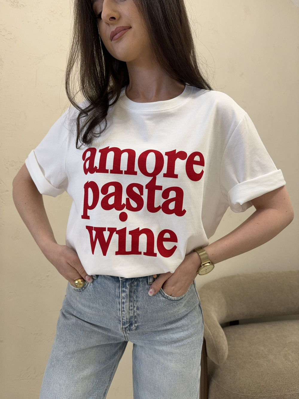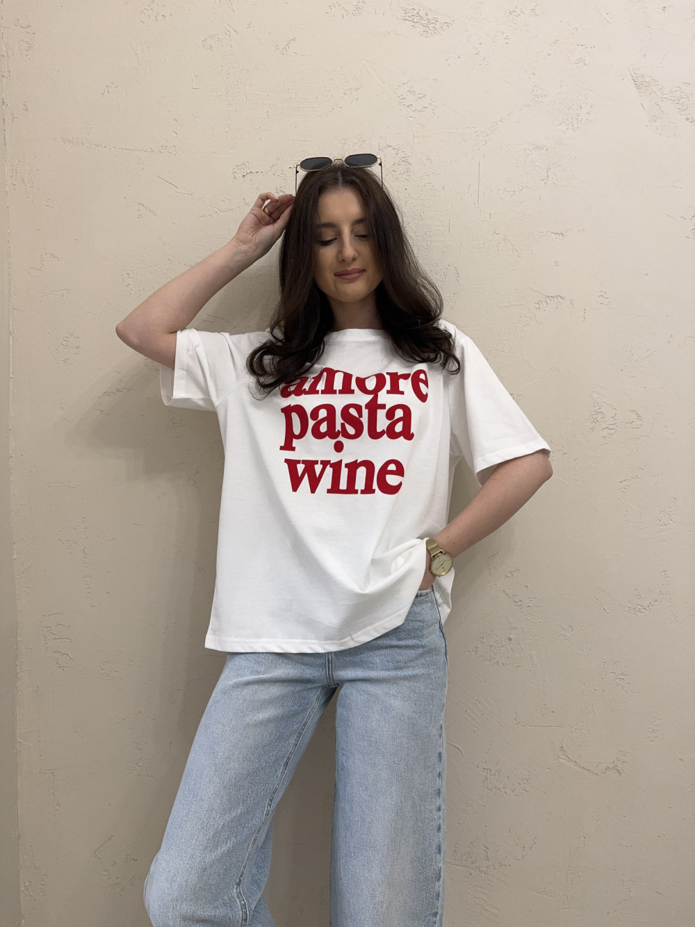 Bawełniany T-shirt o modnym, oversize’owym kroju, który zapewnia swobodę i komfort noszenia. Klasyczny fason z krótkim rękawem i lekko obniżoną linią ramion pięknie układa się na sylwetce i świetnie sprawdzi się w codziennych stylizacjach. Największą uwagę przyciąga wyrazisty napis na przodzie, który nadaje koszulce charakteru i modowego luzu. To model, który idealnie łączy prostotę z ciekawym detalem, dzięki czemu świetnie wygląda zarówno z jeansami, jak i bardziej kobiecymi elementami garderoby.