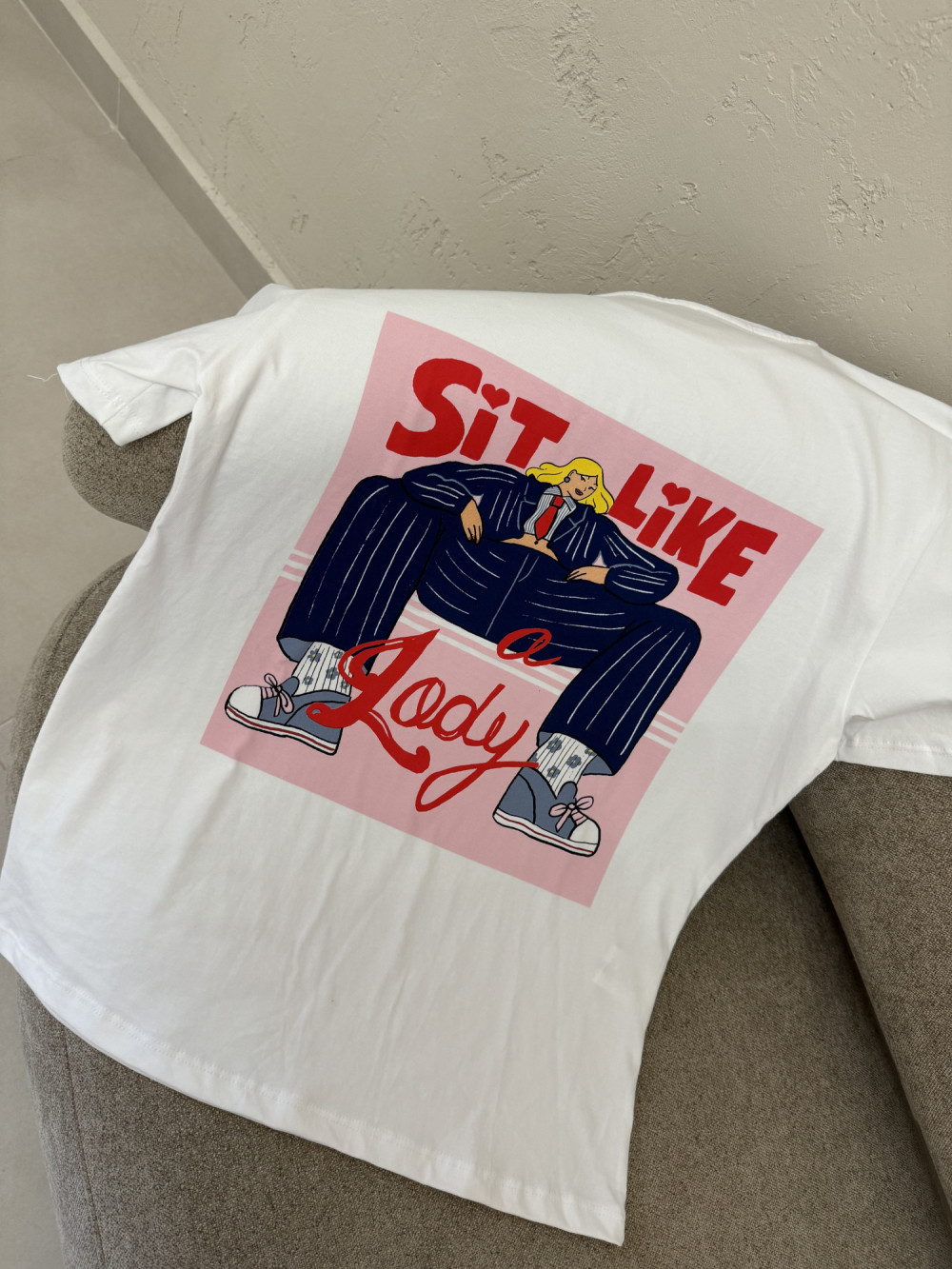 T-shirt z nadrukiem na plecach 100% bawełna SIT LIKE