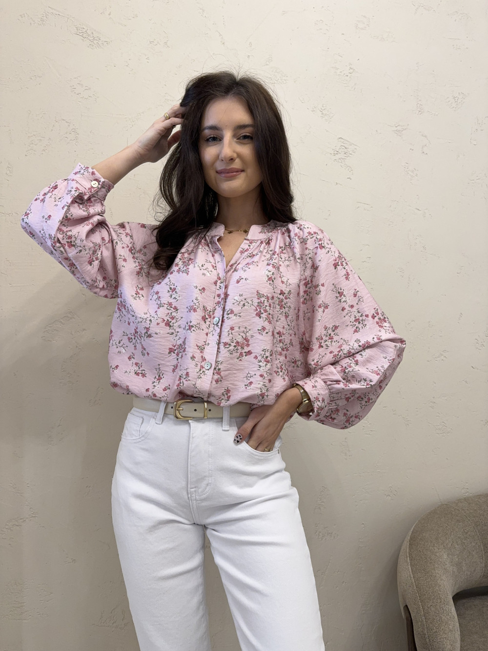 Koszula różowa w kwiaty 100% wiskoza ROSE GARDEN