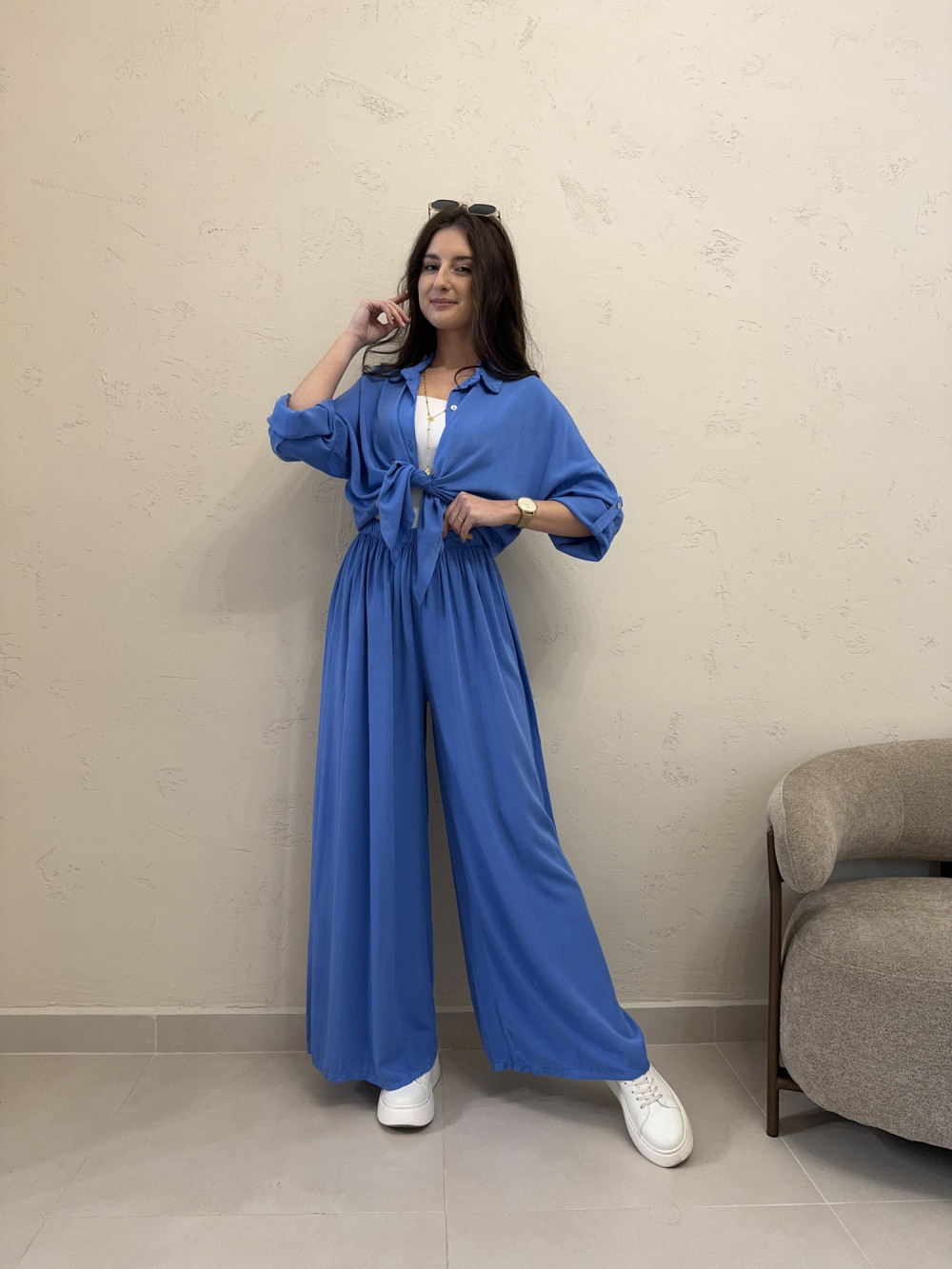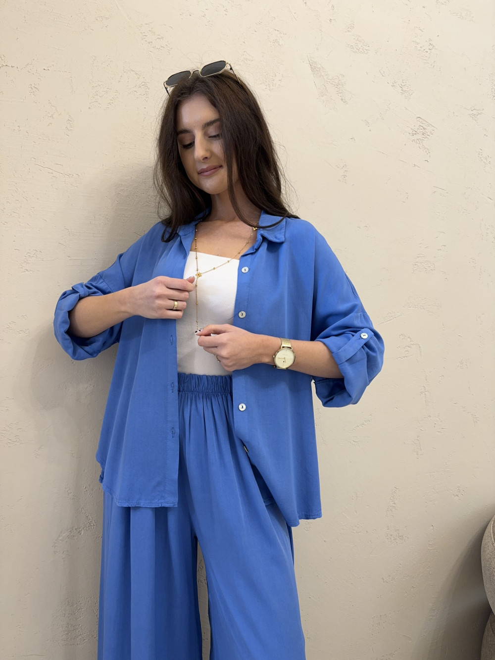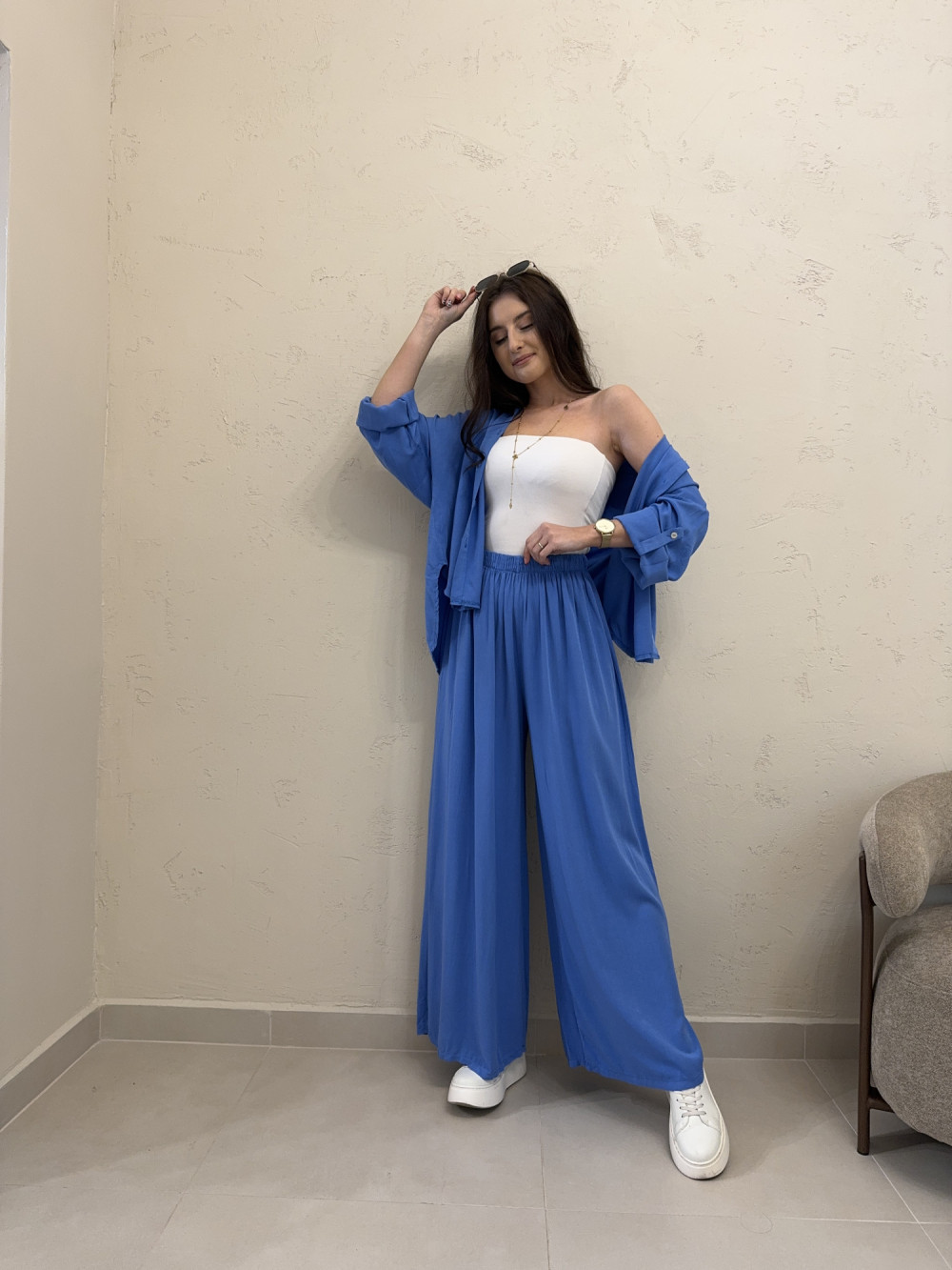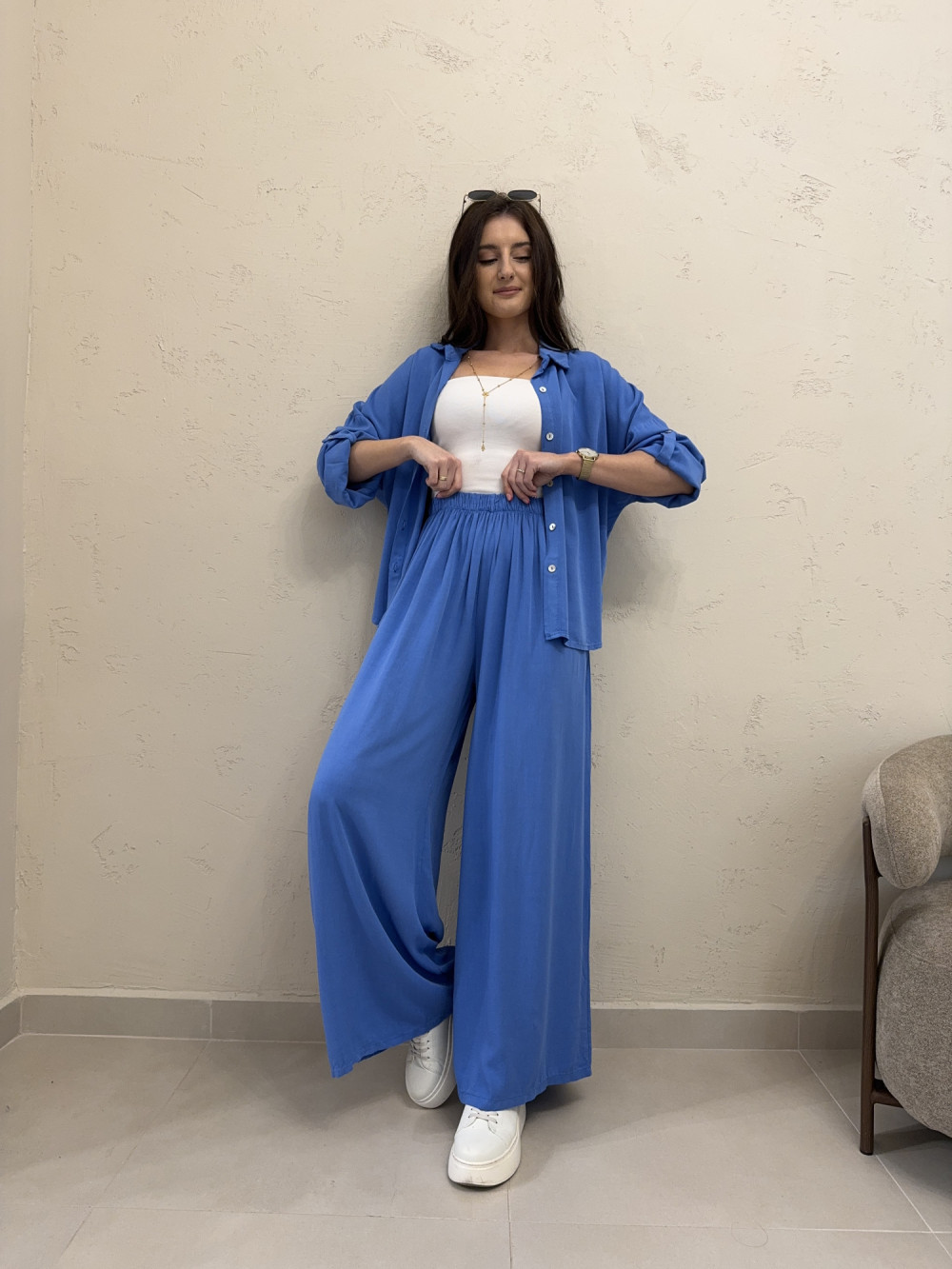 Komplet szerokie spodnie + koszula oversize niebieski VIRAL