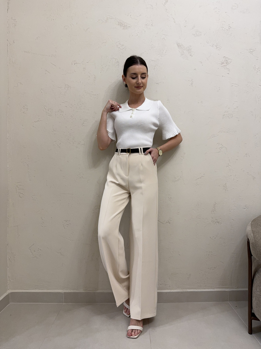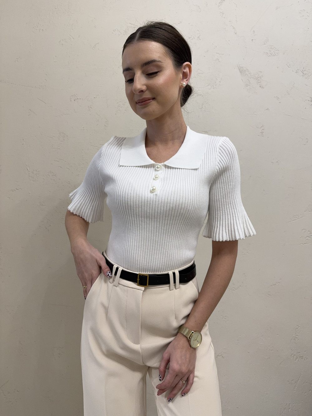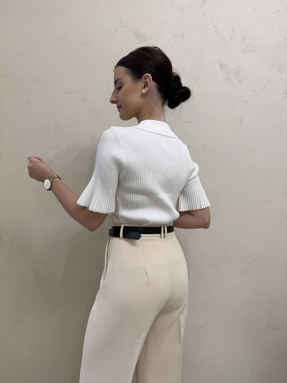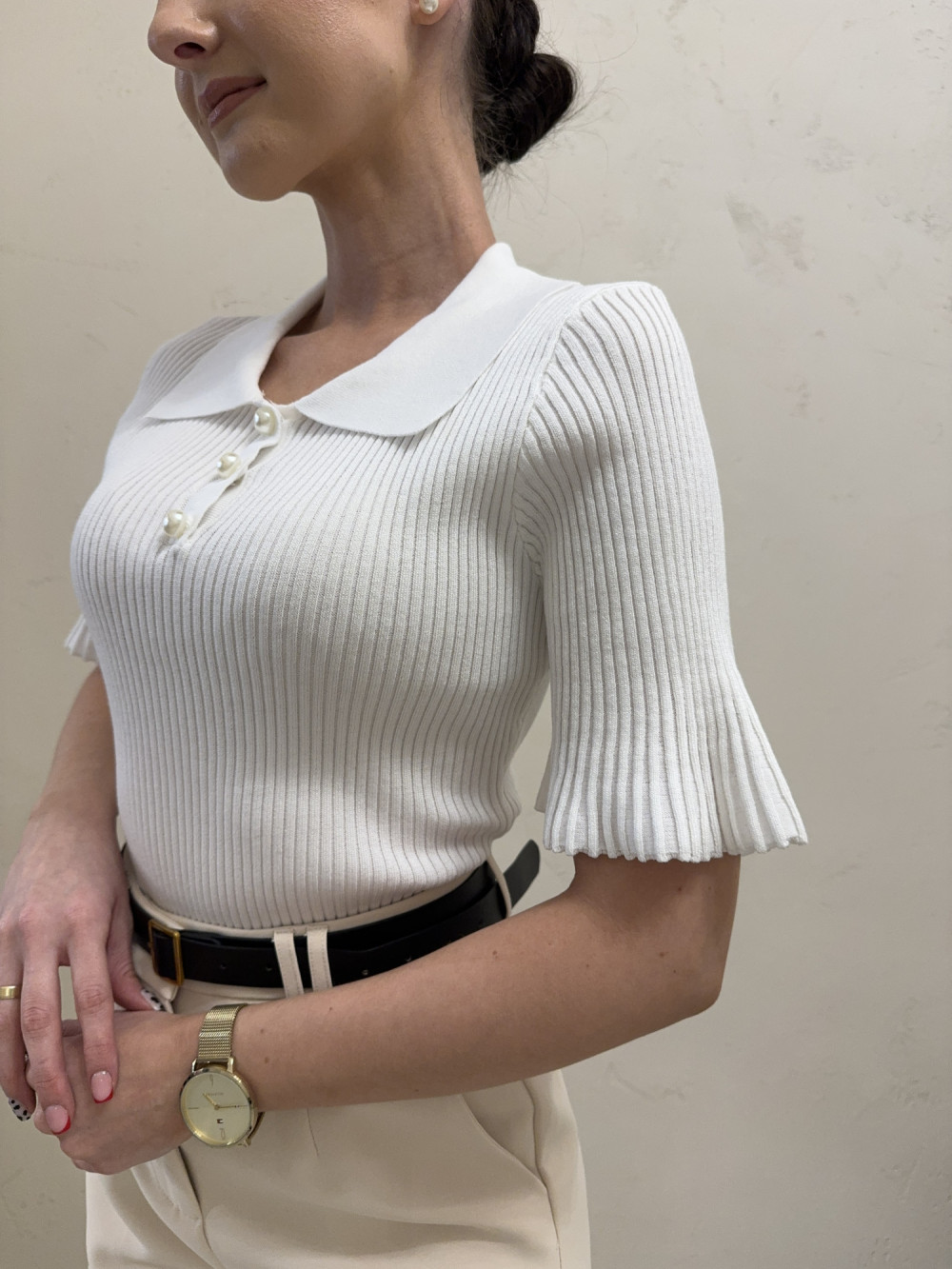 Bluzka NADIA zachwyca subtelną elegancją i wyjątkowym komfortem noszenia. Uszyta w większości z miękkiej wiskozy, delikatnie otula ciało i pięknie dopasowuje się do sylwetki. Klasyczny kołnierzyk i ozdobne guziki nadają jej ponadczasowego charakteru. Lekko prążkowany materiał dodaje struktury i elegancji całej stylizacji. Idealna zarówno do spodni z wysokim stanem, jak i eleganckich spódnic.