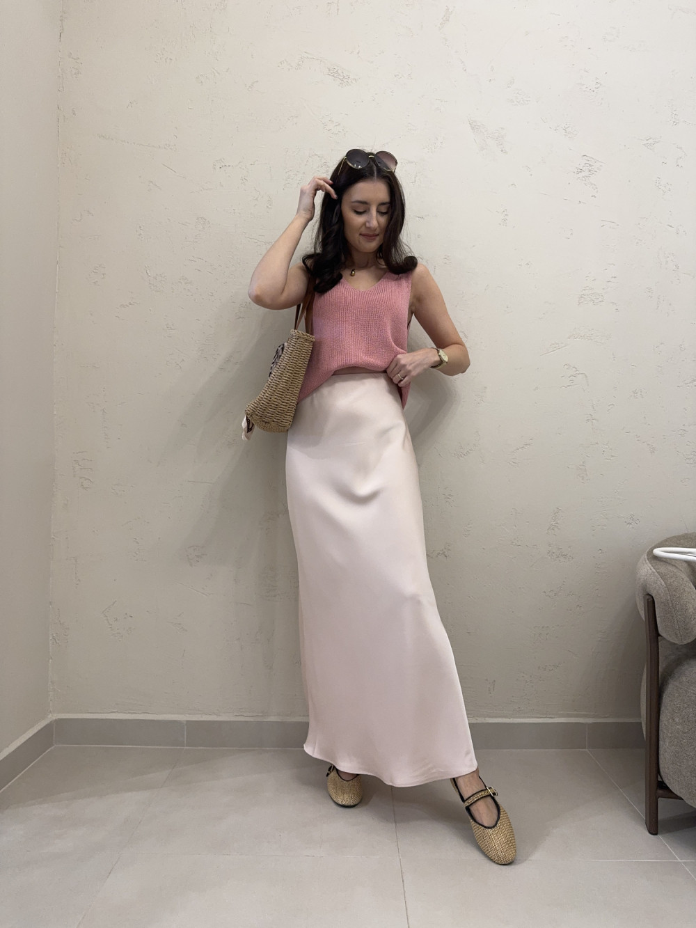 Lekka spódnica o swobodnie opływającym kroju, która pięknie porusza się przy każdym kroku. Model z elastyczną gumką w talii, dzięki czemu łatwo dopasowuje się do sylwetki i zapewnia komfort noszenia przez cały dzień. Prosta, ponadczasowa forma sprawia, że spódnica świetnie sprawdzi się zarówno w codziennych stylizacjach, jak i w bardziej eleganckim wydaniu. Uniwersalny fason, który z łatwością dopasujesz do różnych stylów.