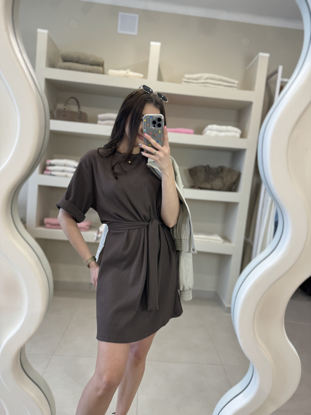 Filmik z produktem i dokładną prezentacją na osobie jest dostępny na naszym Instagramie - szykovnybutik, w wyróżnionej relacji "29.03.2026"